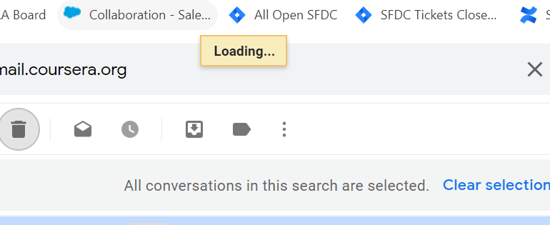 5. You'll probably see a little yellow Loading⦠bar at the top of your screen while the messages delete. You can navigate away from the page without impacting the deletion process.